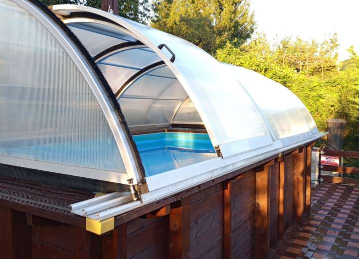 Vychutnajte si dokonalé spojenie pohody, slnka a výhľadov v našom hotelovom bazénovom areáli. Sezónny bazén s krytím z posuvného lexanového prístrešku ponúka komfortné kúpanie aj v menej priaznivom počasí. Vďaka ohrevu vody tepelným čerpadlom si tak doprajete osvieženie i príjemne teplú vodu od jari až do neskorej jesene.