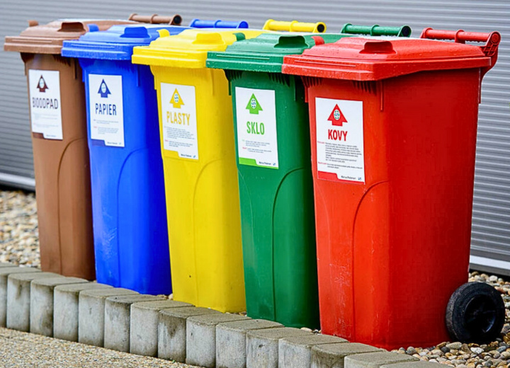 Separujeme v označených nádobách triedený odpad (sklo, papier, plast)