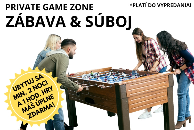 ● UBYTUJTE SA MIN. NA 4 NOCI V MIMO SEZÓNE (1.9. - 30.6) A 1 HOD. V GAME ZONE MÁTE ZDARMA !